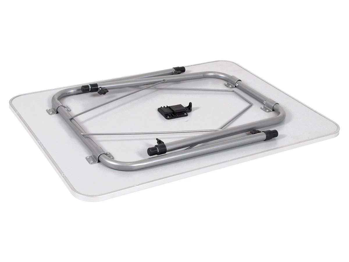 Deze Bo-Camp tafel heeft een afmeting van 80 x 60 cm en is daarmee geschikt voor 1 of 2 personen. De tafel is traploos in hoogte verstelbaar van 30 tot 68 cm. De inklapbare tafelpoten zijn gemaakt van aluminium met daarop een blad van MDF. Het tafelblad is afgewerkt met een aluminium stootrand.