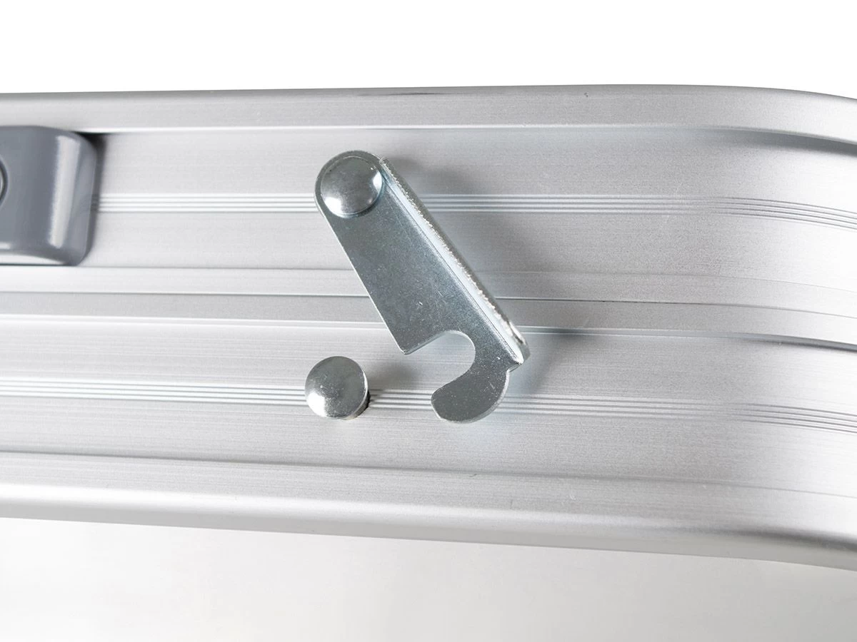 Onder het blad zit een handig lectuurnet zodat je altijd je boek of tijdschrift in de buurt hebt. Na gebruik is de tafel compact op te vouwen, door het deelbare blad kun je de tafel inklappen als een koffer.