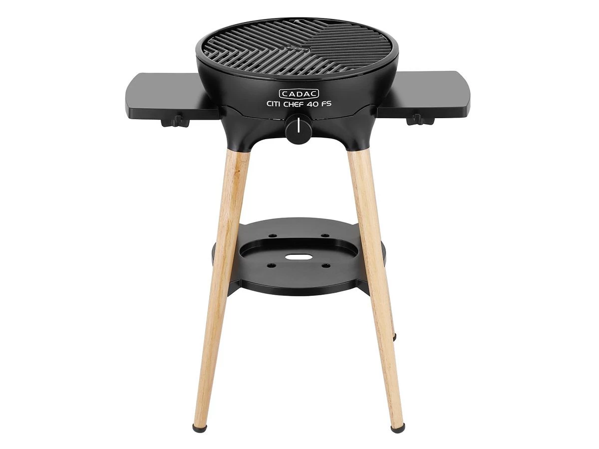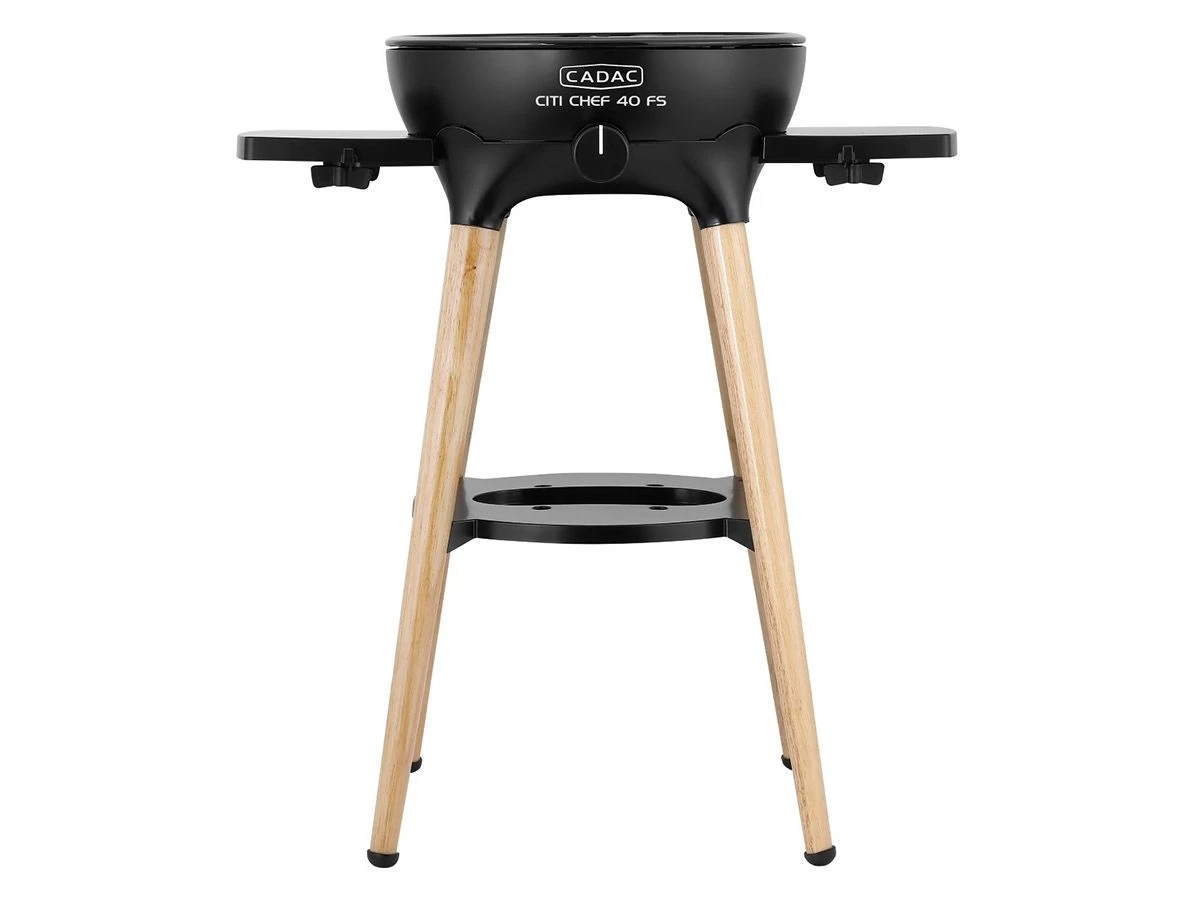 De poten zijn gemaakt van duurzaam hout en het grilloppervlak heeft een diameter van 40 centimeter. Dankzij de uitneembare, geëmailleerde vetpan is de Cadac Citi Chef 40 FS makkelijk schoon te maken. De vetpan is tevens vaatwasserbestendig. De zwarte zijtafels zijn ook makkelijk afneembaar en voorzien van ophanghaakjes.
