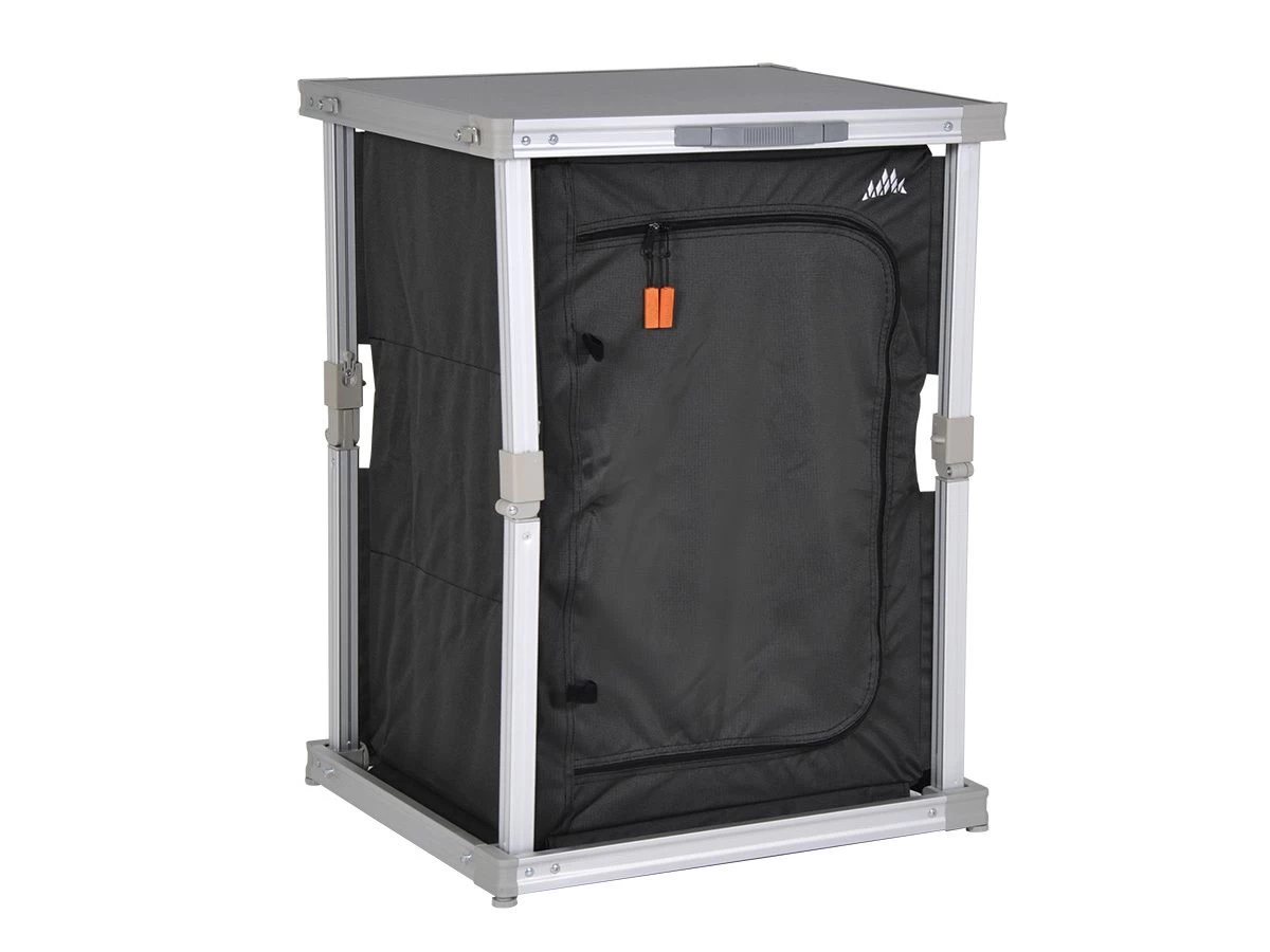 Deze campingkast heeft drie ruime opbergvakken waarin je jouw kampeeruitrusting overzichtelijk kunt opbergen. De achterzijde is deels voorzien van mesh gaas dat ervoor zorgt dat de kast goed geventileerd wordt.