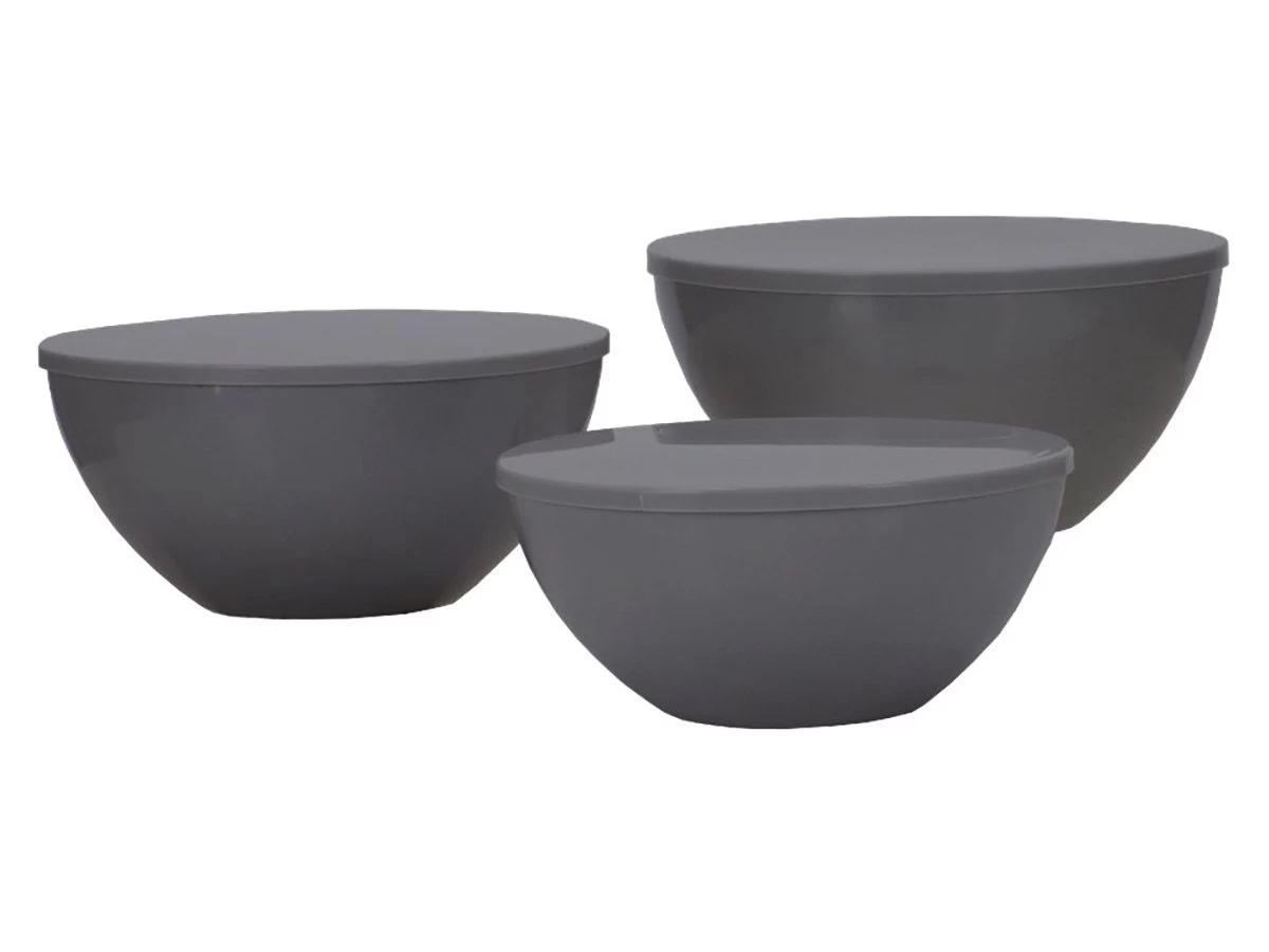 De 6-delige set bestaat uit drie schalen met deksels. Het formaat van deze schalen is ø 17 cm, ø 20 cm en ø 22 cm. De schalen zijn gemaakt van melamine. De schalen kunnen hierdoor in de vaatwasser en zijn duurzaam.